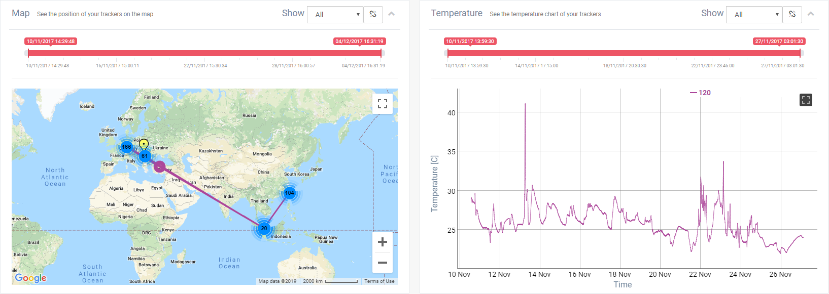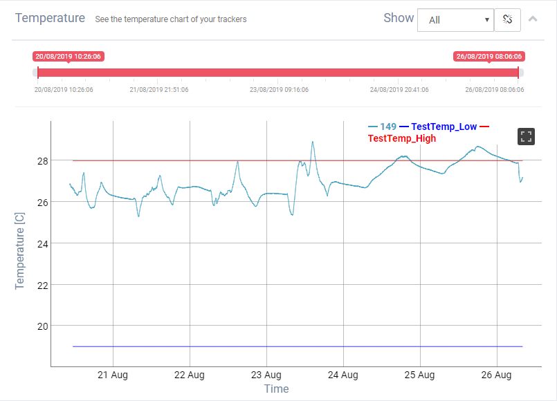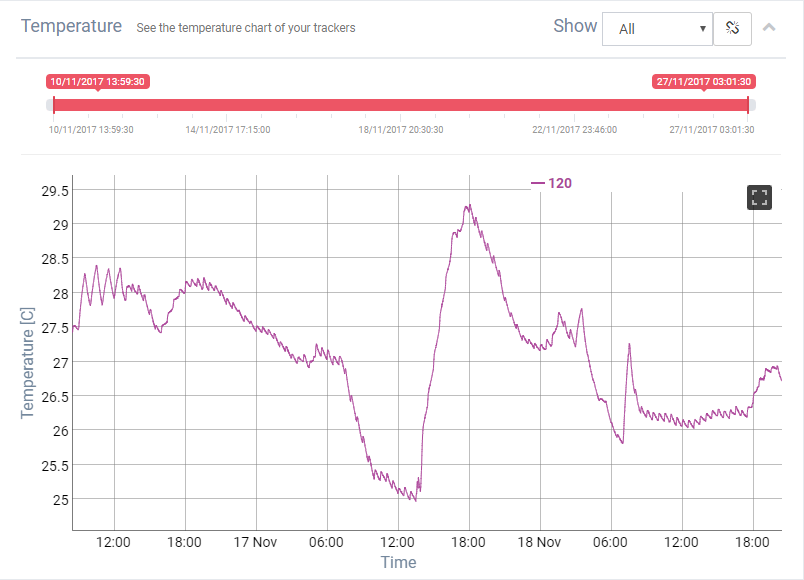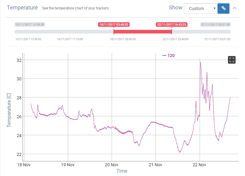 We can select to see on the Temperature only the trackers temperatures from a defined period of time: